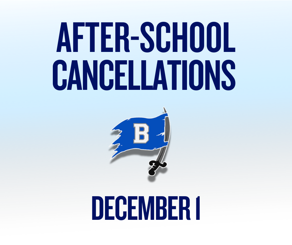 All after-school practices and activities across the district are canceled. This includes the C Team Basketball game vs. Fulton; a new date will be shared once it’s confirmed.We encourage everyone ...